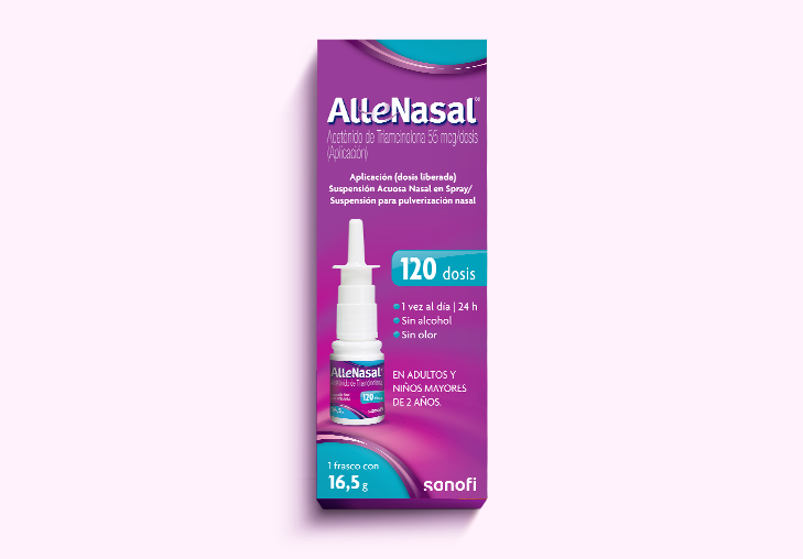 Allenasal® ofrece potente y rápido alivio de los síntomas de la rinitis alérgica como estornudos, picazón nasal, secreción nasal y congestión nasal. Su fórmula en suspensión acuosa actúa directamente en la zona afectada, sin olor y sin dejar mal sabor. Una sola aplicación al día es suficiente para mantener el control de los síntomas durante 24 horas.
