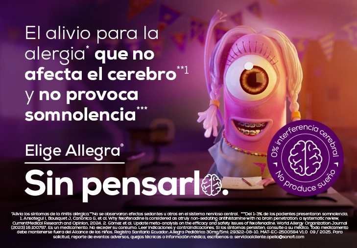 Allegra ® pediátrico ha sido desarrollado para el alivio de la rinitis alérgica desde los 2 años y la urticaria crónica idiopática desde los 6 meses, no produce somnolencia** y por eso no afecta el rendimiento escolar
