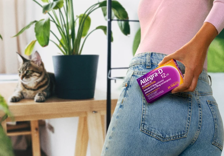 When nasal congestion and allergy symptoms hit, Allegra-D® is here to clear things up! Pseudoephedrine (PSE), a clinically proven decongestant, reduces swelling of the nasal passage, while Fexofenadine effectively relieves allergy symptoms. Allegra-D® tackles tough allergy symptoms and nasal congestion, so you can breathe easy and feel good all day.